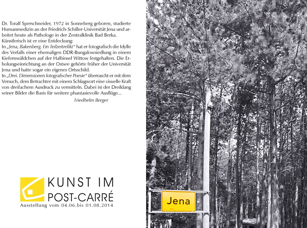 2014–2015 | Jena (Kunst im Postcarré) Fotoausstellung »DR3I. Dimensionen fotografischer Poesie.« & »JENA. Bakenberg.« |